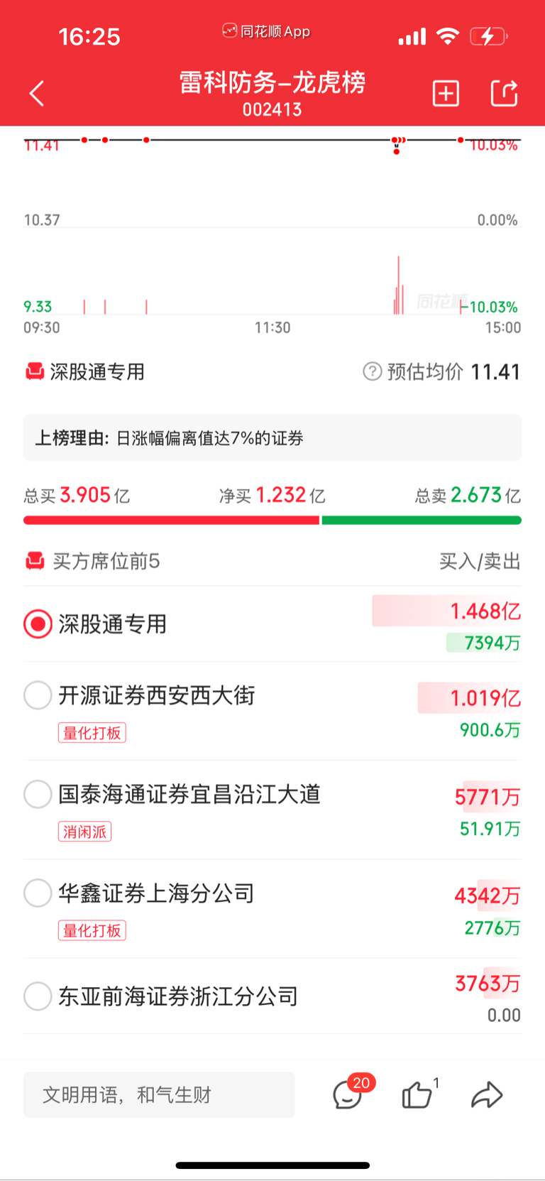 $雷科防务(SZ002413)$