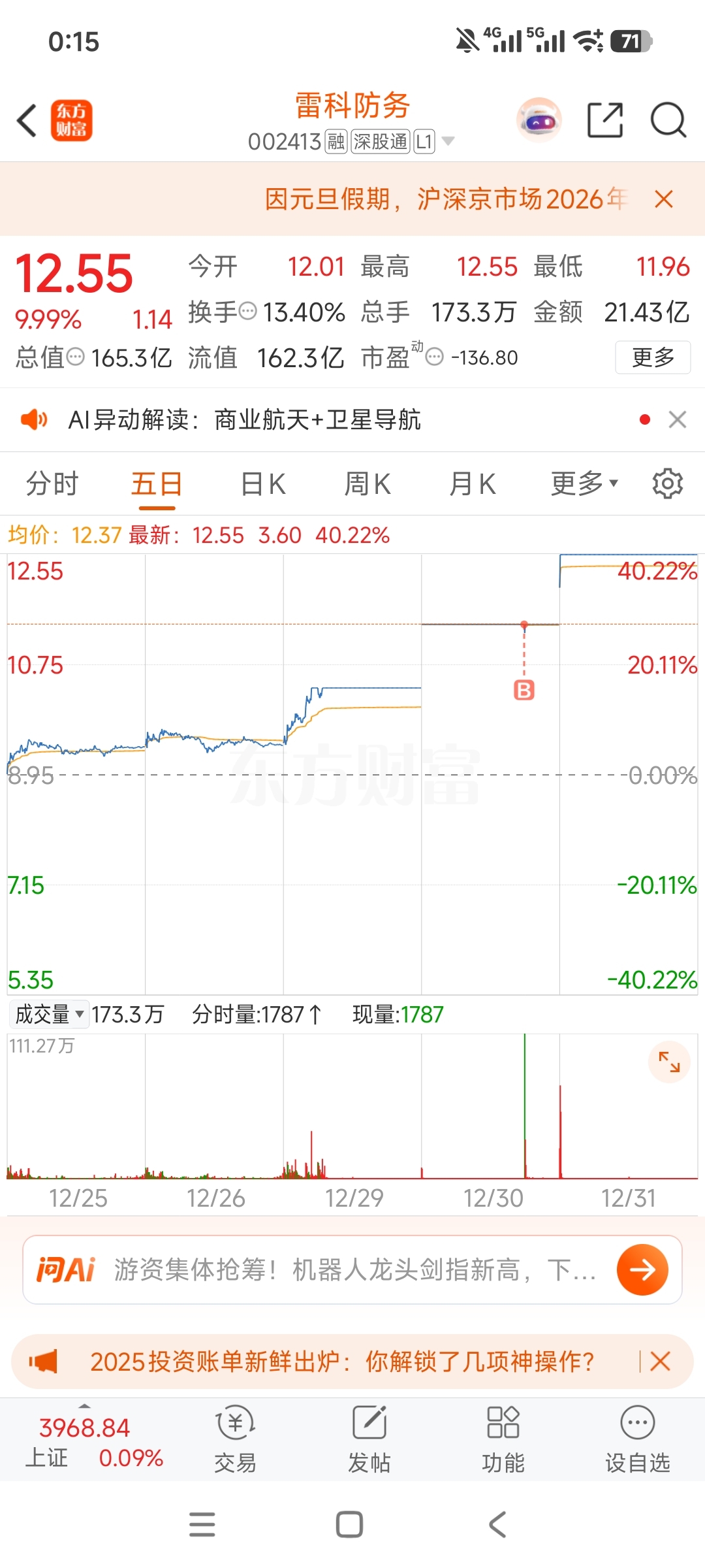 $雷科防务(SZ002413)$ 大佬们,小白一枚真心求教,下周要格局吗?