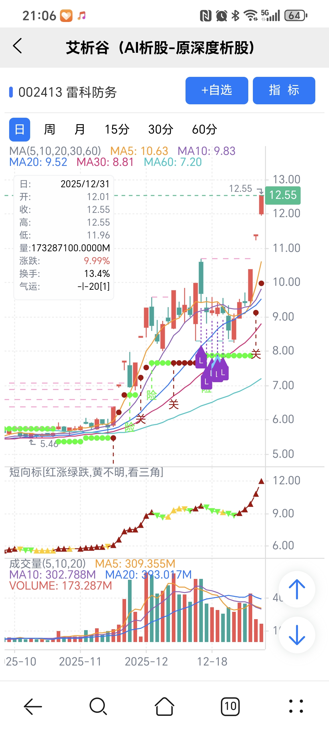 风险:股价下穿短趋线或红变绿。