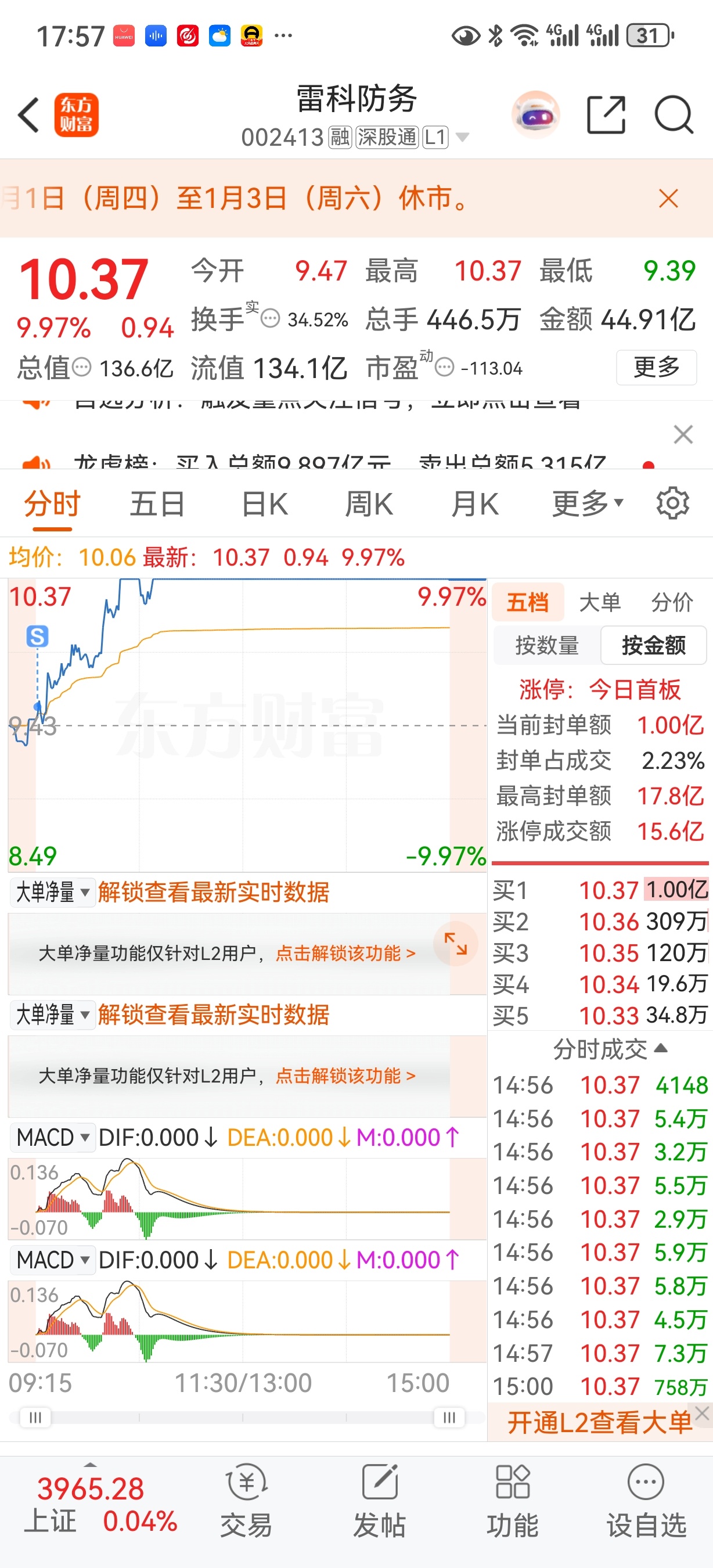 $雷科防务(SZ002413)$ 雷科四连板,太想抽自己大嘴巴了