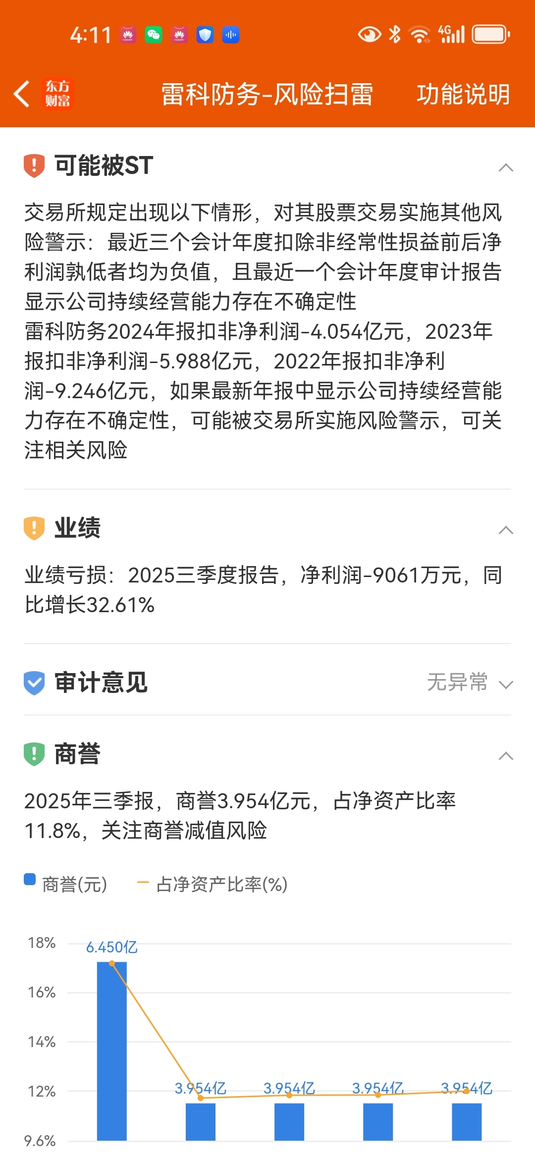 $雷科防务(SZ002413)$ 可能会st