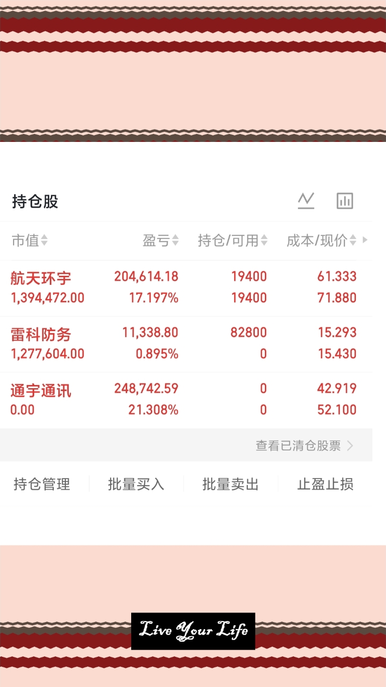 买:卖:先持仓不变,昨天没出通宇通讯,今天给了我一个惊喜但还是见好就收,落袋为安