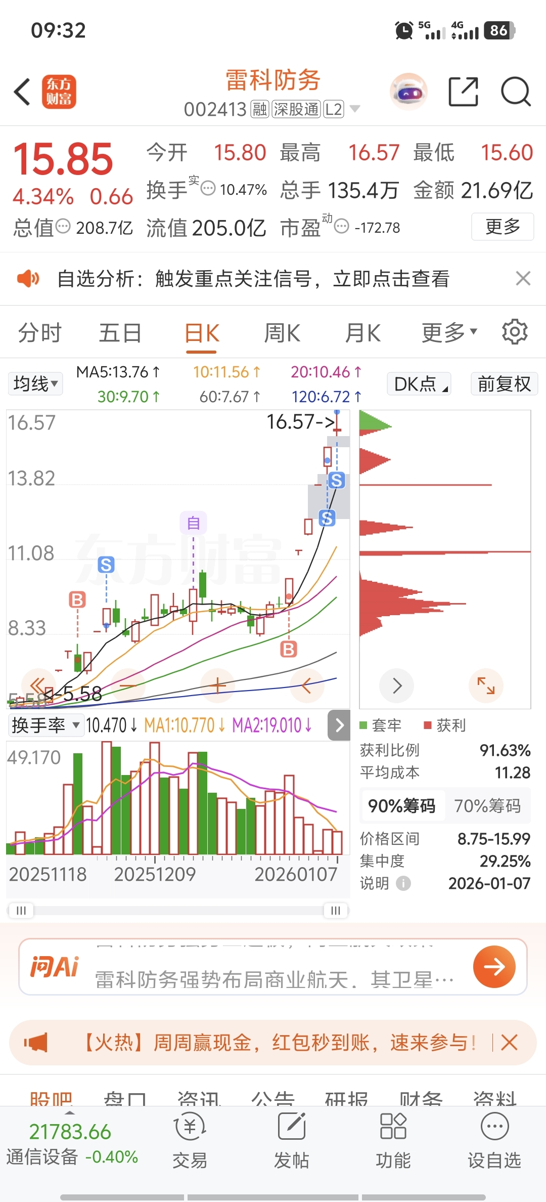 $雷科防务(SZ002413)$ 留下的家人们发大财