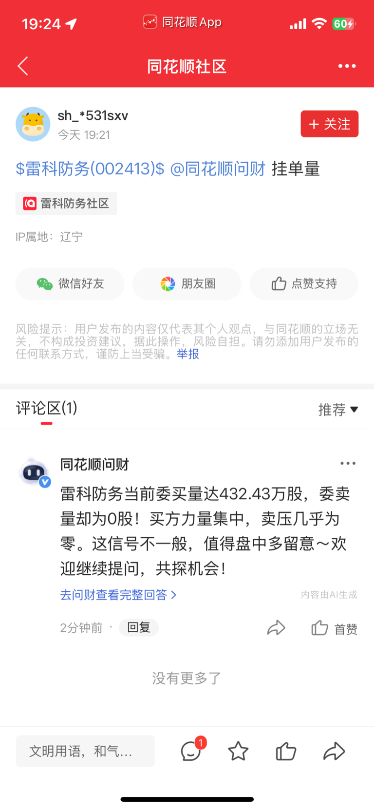 温馨提示: 1.根据《证券法》规定,禁止编造、传播虚假信息或者误导性信息,扰乱证券市场;2.用户在本社区发表的所有资料、言论等仅代表个人观点,与本网站立场无关,不对您构成任何投资建议。用户应基于自己的独立判断,自行决定证券投资并承担相应风险。《东方财富社区管理规定》