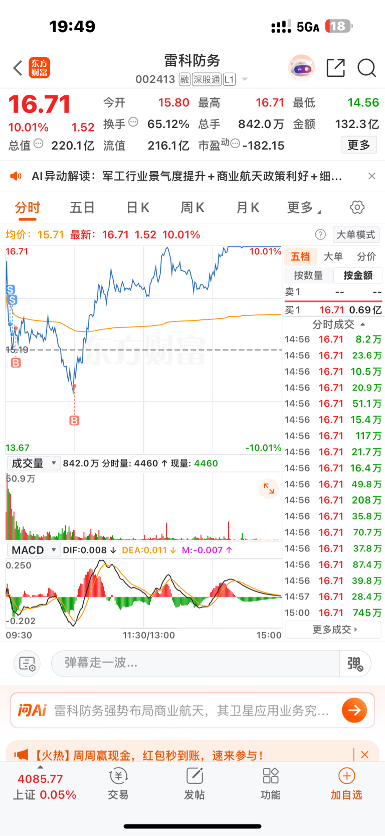 $雷科防务(SZ002413)$ 继续坚定持有