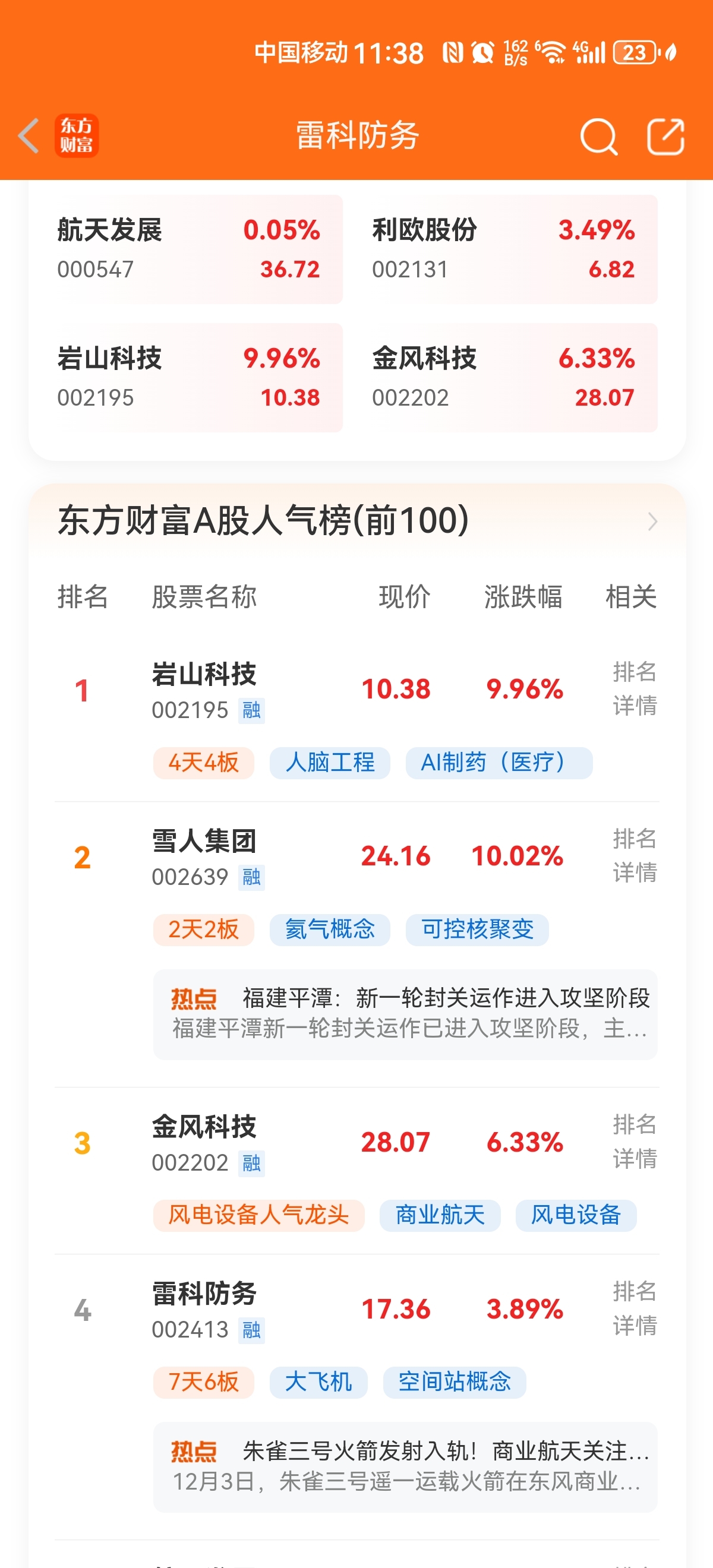 $雷科防务(SZ002413)$ 说异动的都是狗龙头怕鸡毛异动