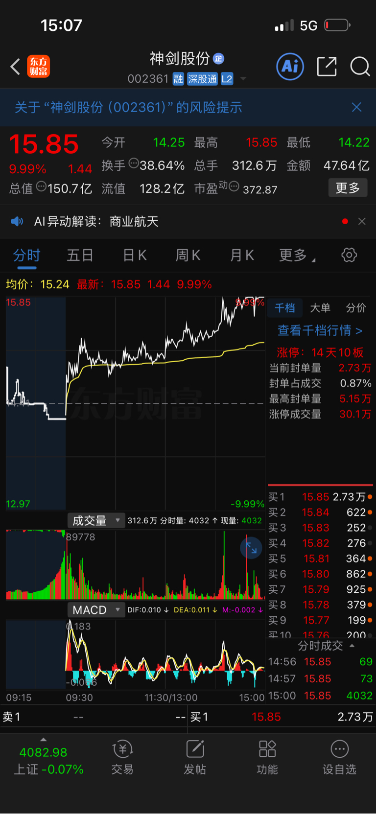 $雷科防务(SZ002413)$ 异动不能涨停吗