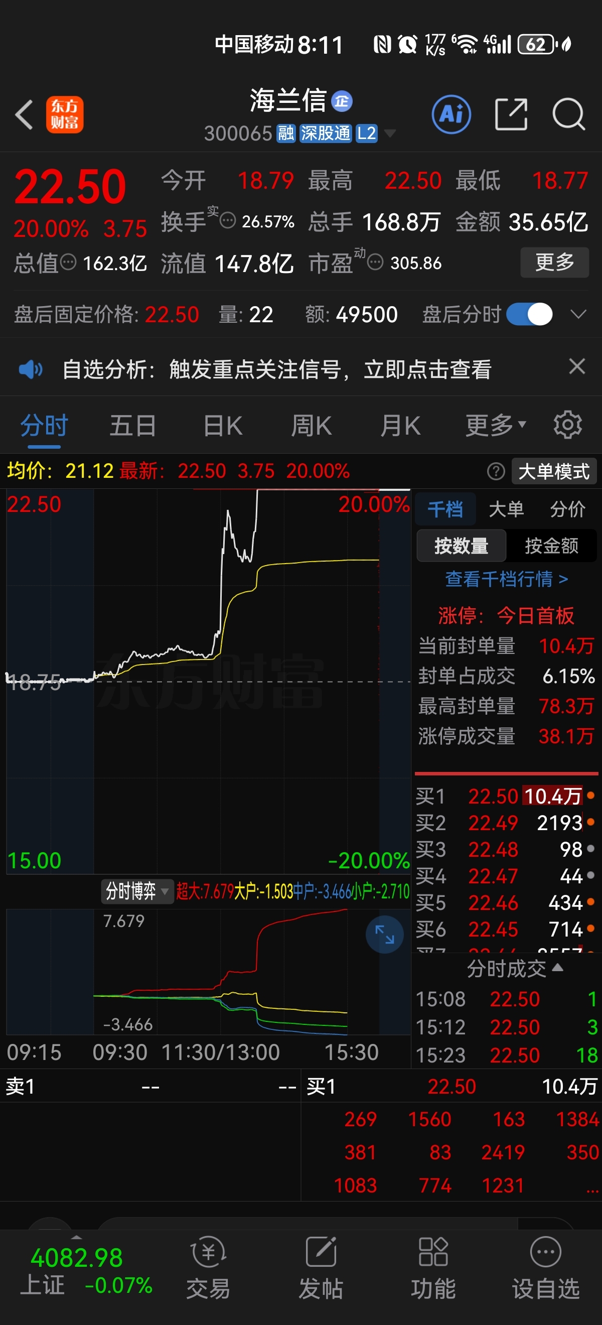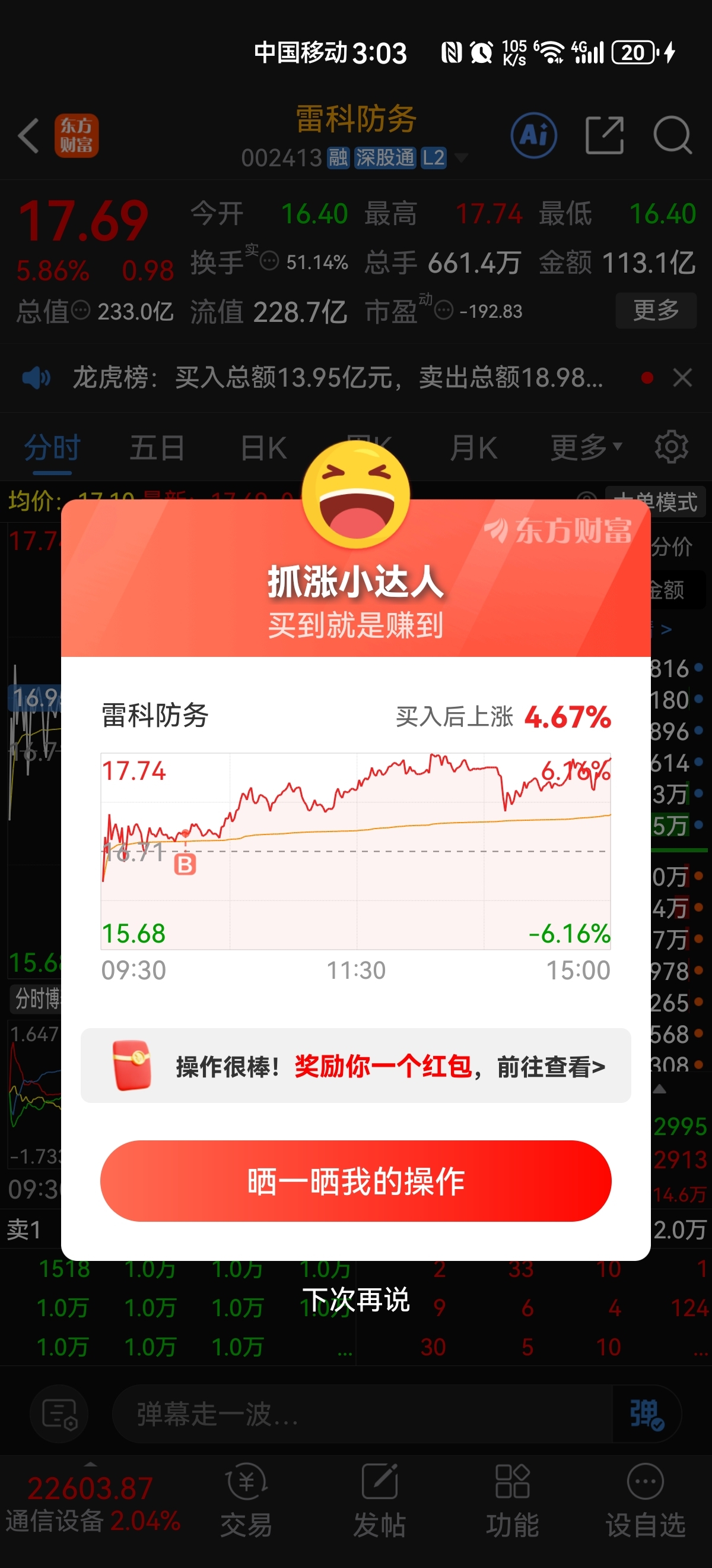 如果今天没有高开涨停,那你们赢了,不跟你们扯了老子去20厘米了省的你们这帮SB老说控异动。真让你吗服了。买个股票不怕跌怕涨,东西踏马的20厘米涨停都一堆了!你一个主板10厘米还踏马的控异动