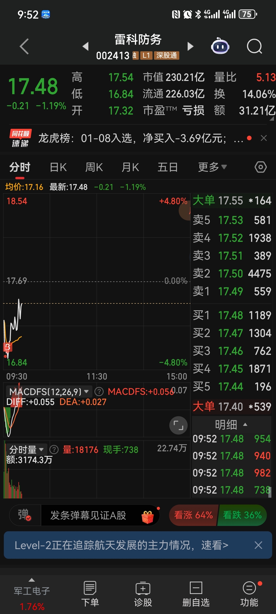 $雷科防务(SZ002413)$ 群总刚刚板上砸了金风,过来支持你一把