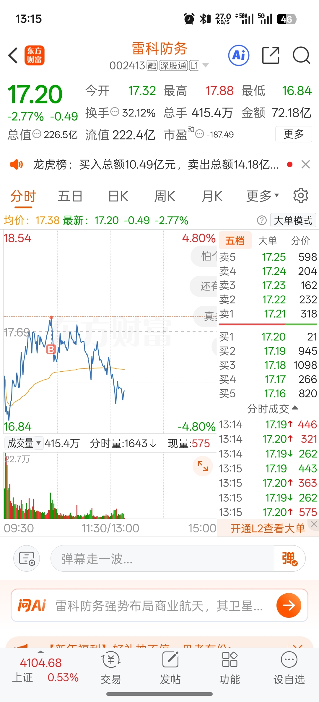 温馨提示: 1.根据《证券法》规定,禁止编造、传播虚假信息或者误导性信息,扰乱证券市场;2.用户在本社区发表的所有资料、言论等仅代表个人观点,与本网站立场无关,不对您构成任何投资建议。用户应基于自己的独立判断,自行决定证券投资并承担相应风险。《东方财富社区管理规定》