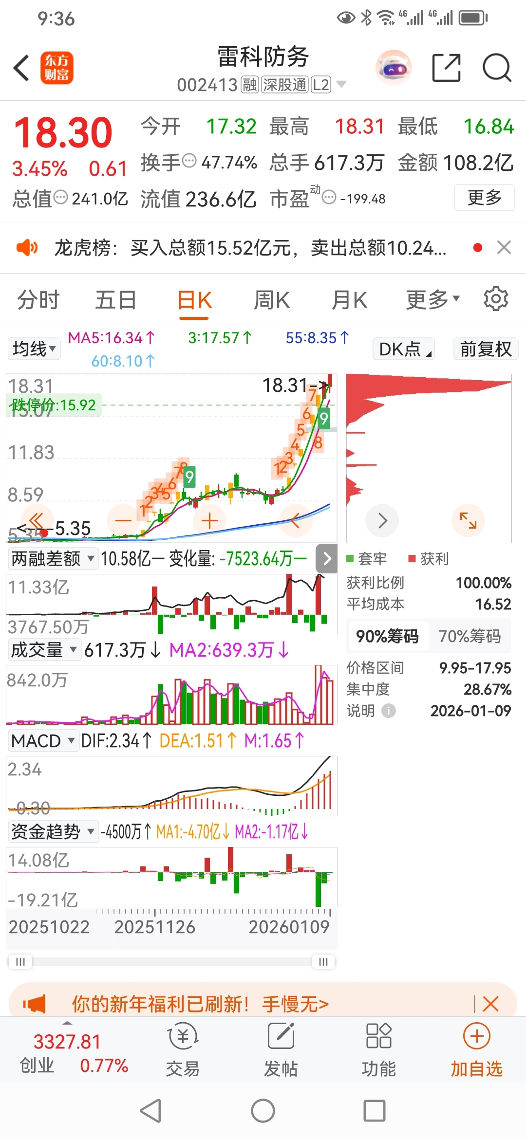 军哥股票,融资买进,雷科防务002413。