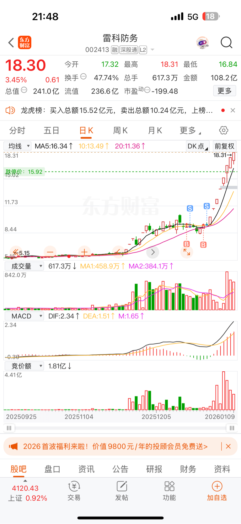 $雷科防务(SZ002413)$ 在坐的各位都得谢谢我