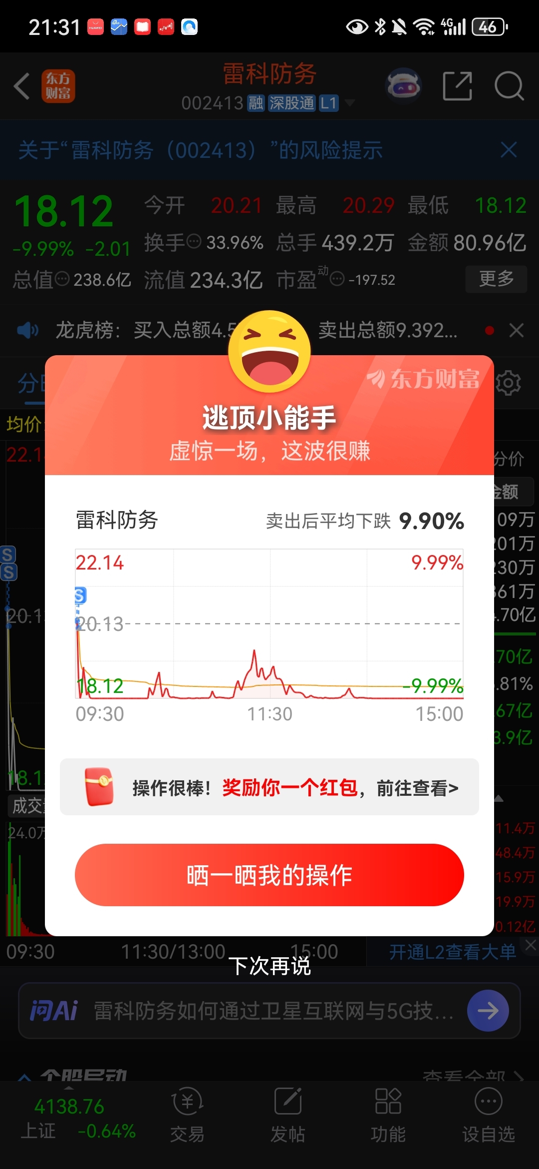 温馨提示: 1.根据《证券法》规定,禁止编造、传播虚假信息或者误导性信息,扰乱证券市场;2.用户在本社区发表的所有资料、言论等仅代表个人观点,与本网站立场无关,不对您构成任何投资建议。用户应基于自己的独立判断,自行决定证券投资并承担相应风险。《东方财富社区管理规定》