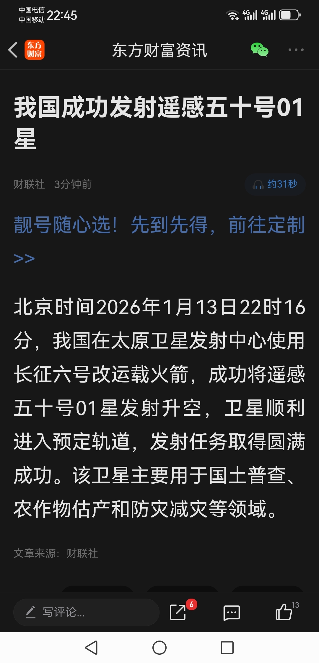 $雷科防务(SZ002413)$ 又发射卫星了,并且成功看图。