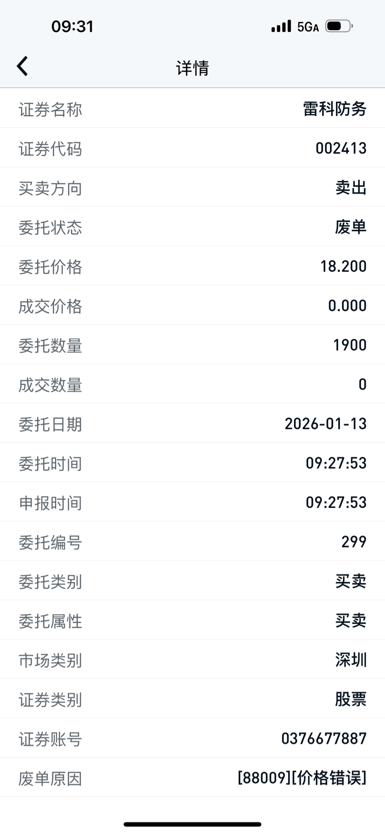 $雷科防务(SZ002413)$ 为什么我这个价格卖不出?