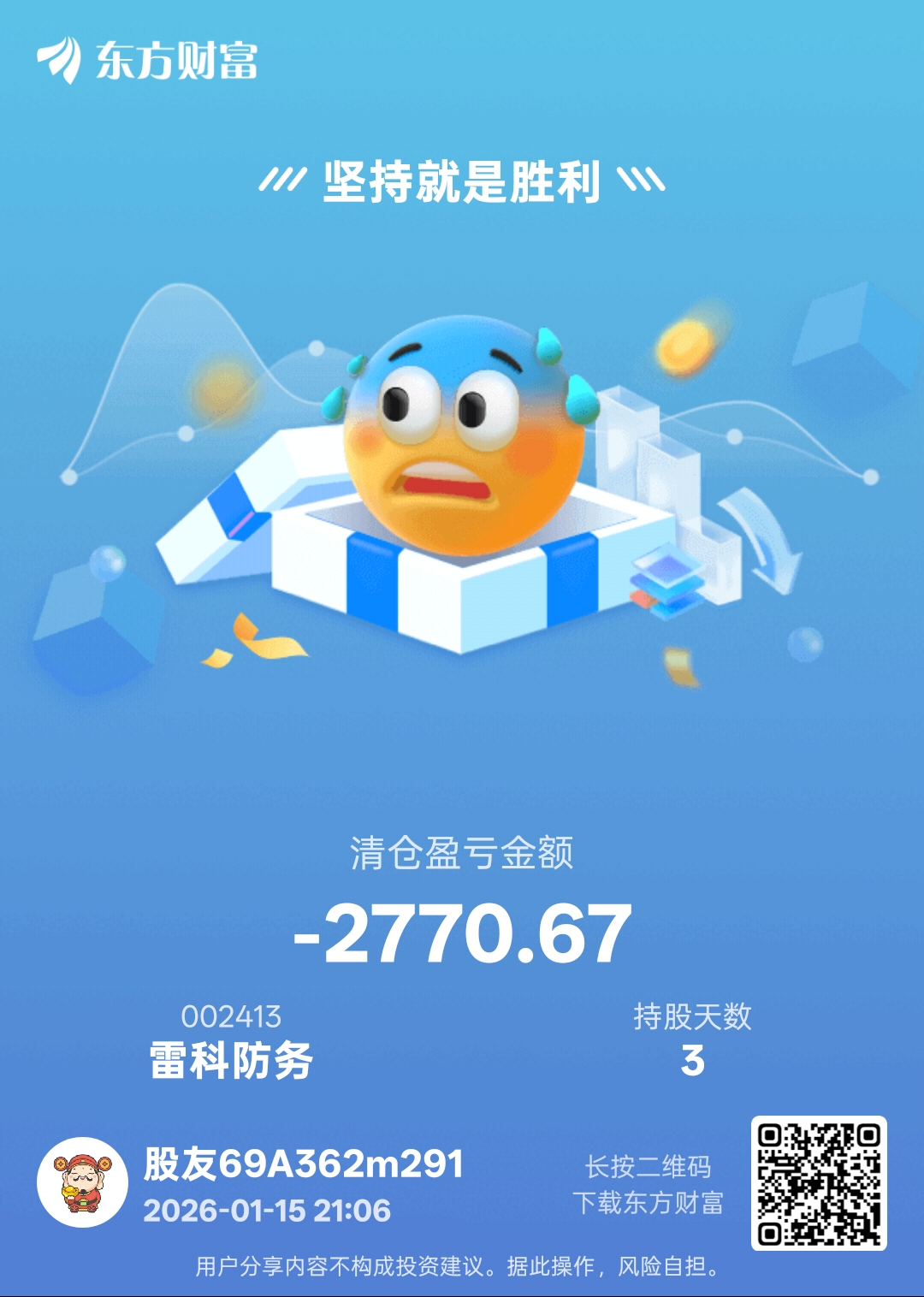 温馨提示: 1.根据《证券法》规定,禁止编造、传播虚假信息或者误导性信息,扰乱证券市场;2.用户在本社区发表的所有资料、言论等仅代表个人观点,与本网站立场无关,不对您构成任何投资建议。用户应基于自己的独立判断,自行决定证券投资并承担相应风险。《东方财富社区管理规定》