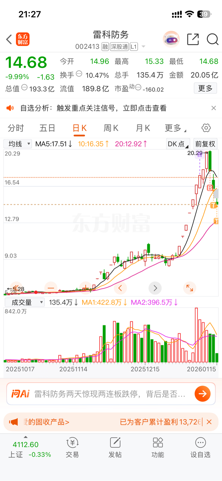 $雷科防务(SZ002413)$ 拍个照纪念下,什么叫三板