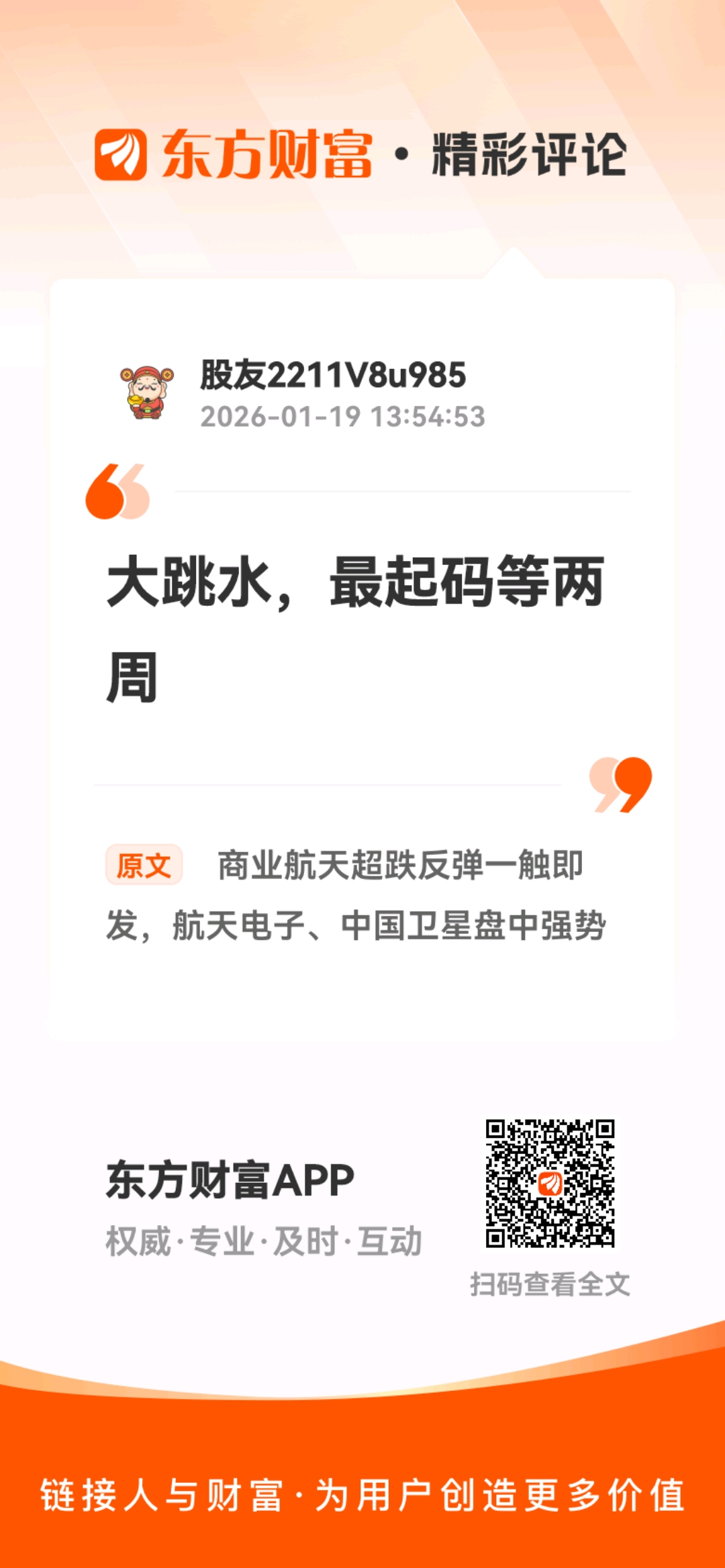 温馨提示: 1.根据《证券法》规定,禁止编造、传播虚假信息或者误导性信息,扰乱证券市场;2.用户在本社区发表的所有资料、言论等仅代表个人观点,与本网站立场无关,不对您构成任何投资建议。用户应基于自己的独立判断,自行决定证券投资并承担相应风险。《东方财富社区管理规定》
