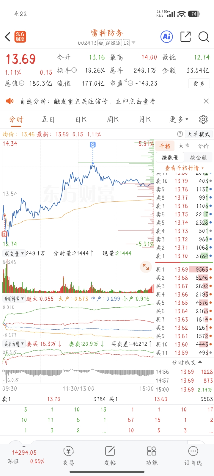$雷科防务(SZ002413)$ 慢慢回本吧