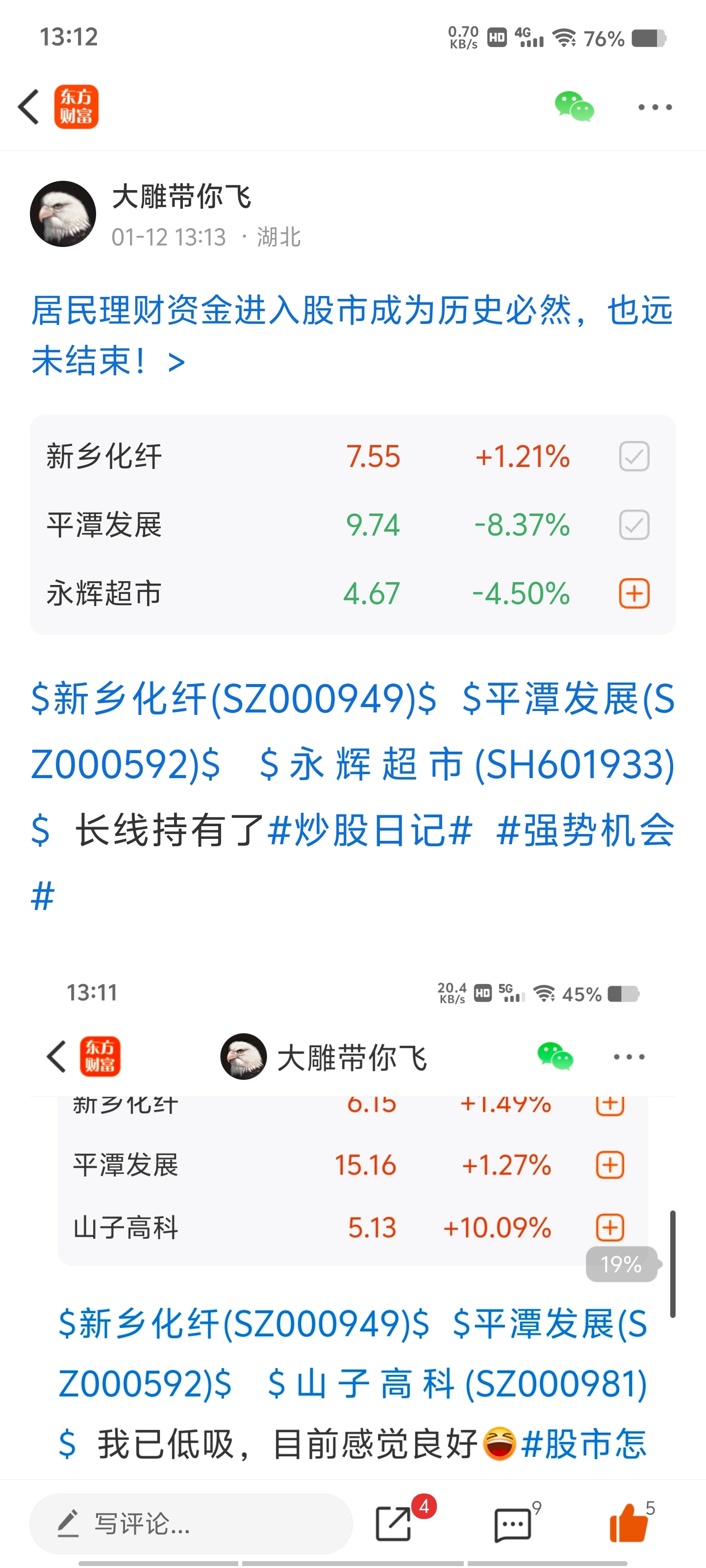 $华茂股份(SZ000850)$ $新乡化纤(SZ000949)$ $平潭发展(SZ000592)$ 我发自己的投资日记从来不想证明自己多厉害,此时此刻我只想说!黑子说话!!!