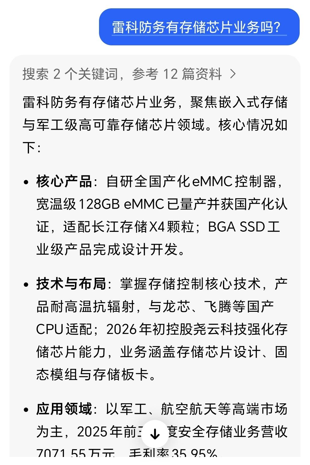 $雷科防务(SZ002413)$ 雷子有存储芯片