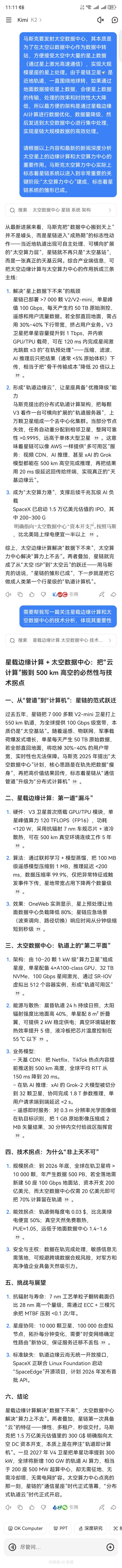 思想实验:太空星载AI边缘计算+太空算力中心。