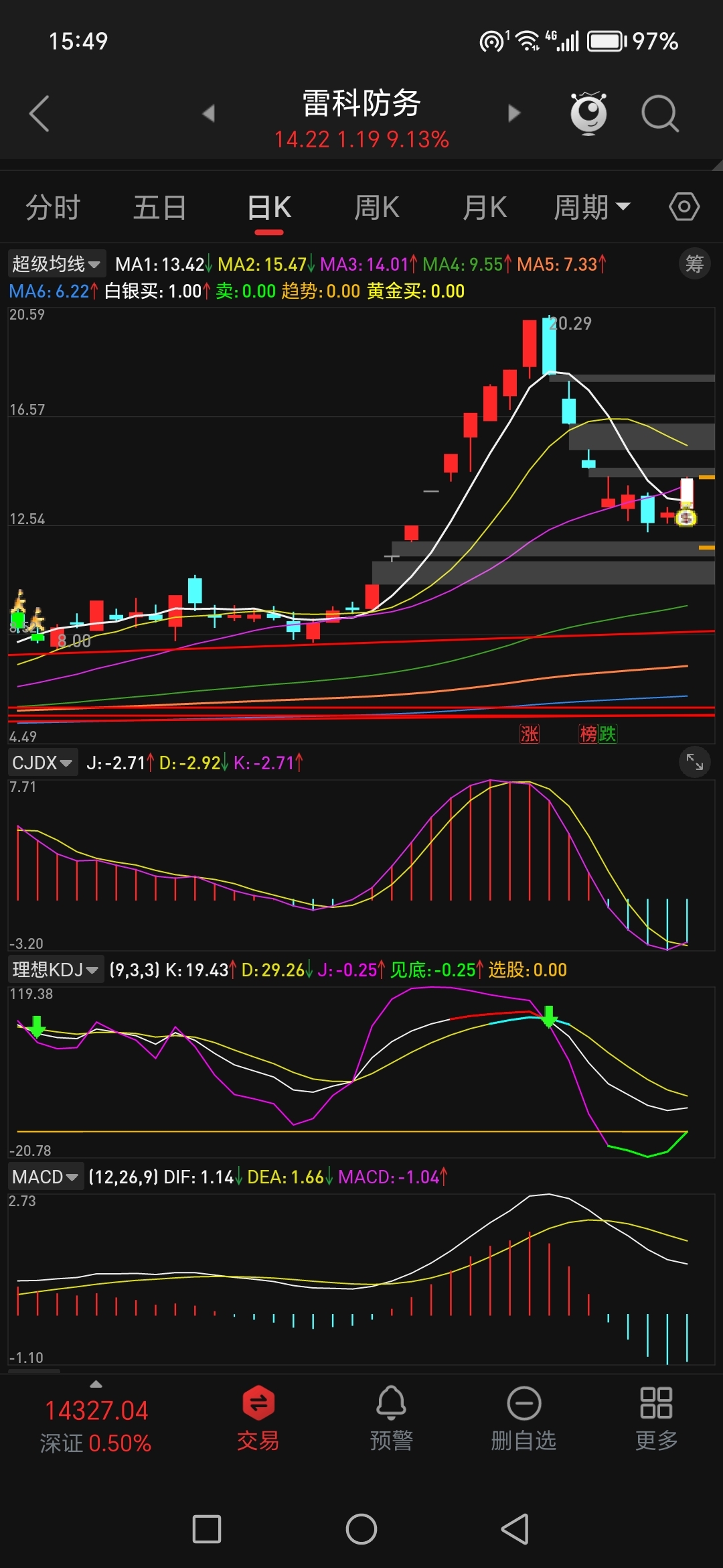 $雷科防务(SZ002413)$ 卖前好好看看指标,就不会卖飞了
