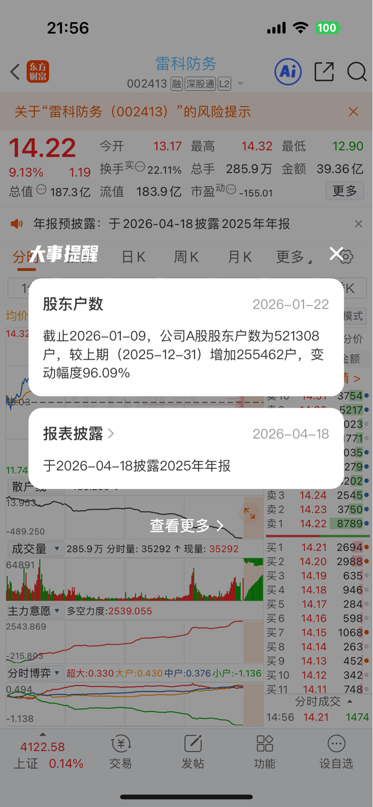 $雷科防务(SZ002413)$ 好家伙现在得现在得多少啊