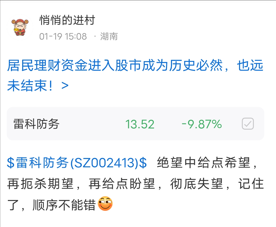 郑重声明:用户在财富号/股吧/博客等社区发表的所有信息(包括但不限于文字、视频、音频、数据及图表)仅代表个人观点,与本网站立场无关,不对您构成任何投资建议,据此操作风险自担。请勿相信代客理财、免费荐股和炒股培训等宣传内容,远离非法证券活动。请勿添加发言用户的手机号码、公众号、微博、微信及QQ等信息,谨防上当受骗!