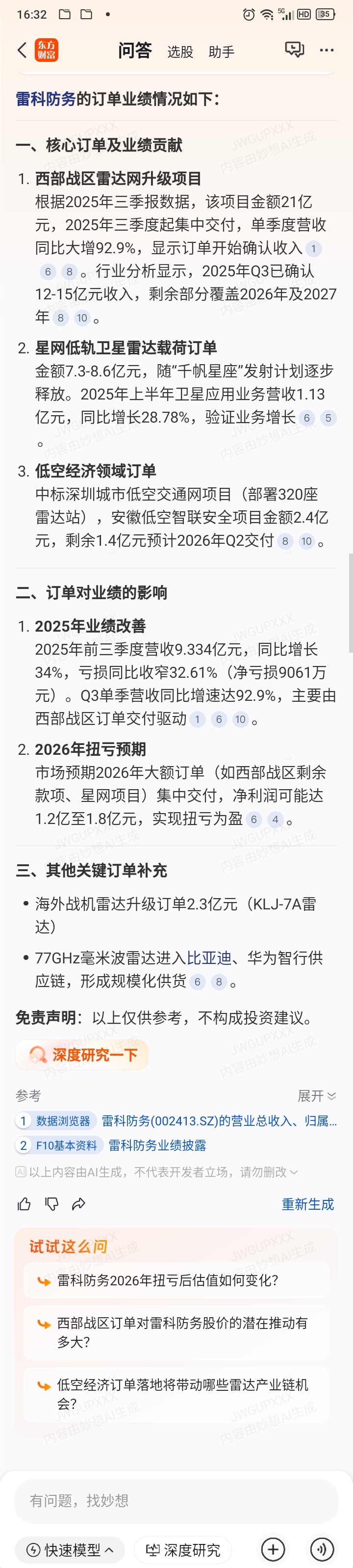 $雷科防务(SZ002413)$ 雷科防务是有实质业绩支撑的,中长期持续看好!