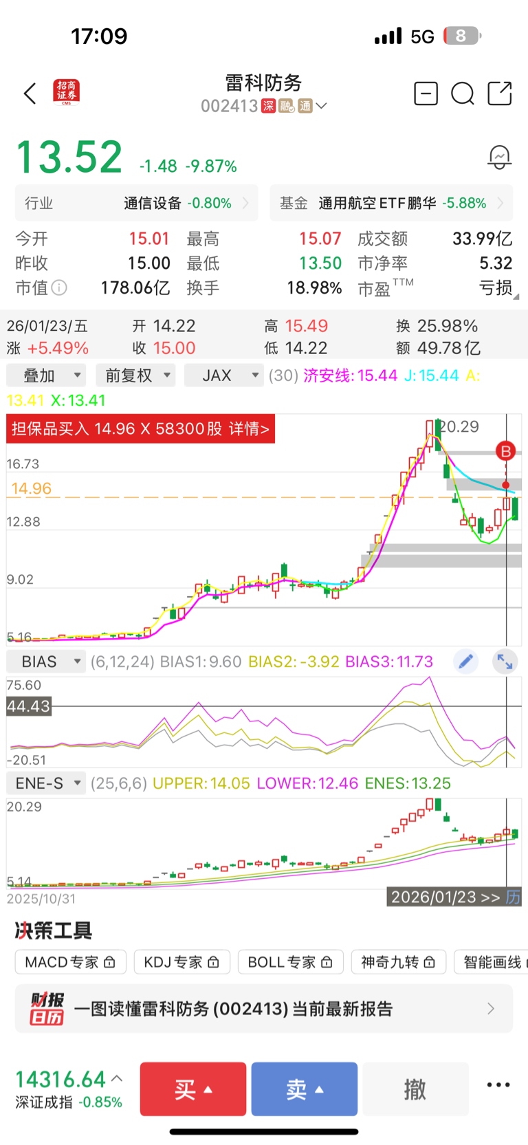 $雷科防务(SZ002413)$ 全仓,死在这里了。