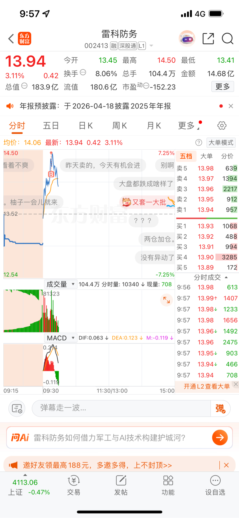 $雷科防务(SZ002413)$ 兄弟们是我买崩了