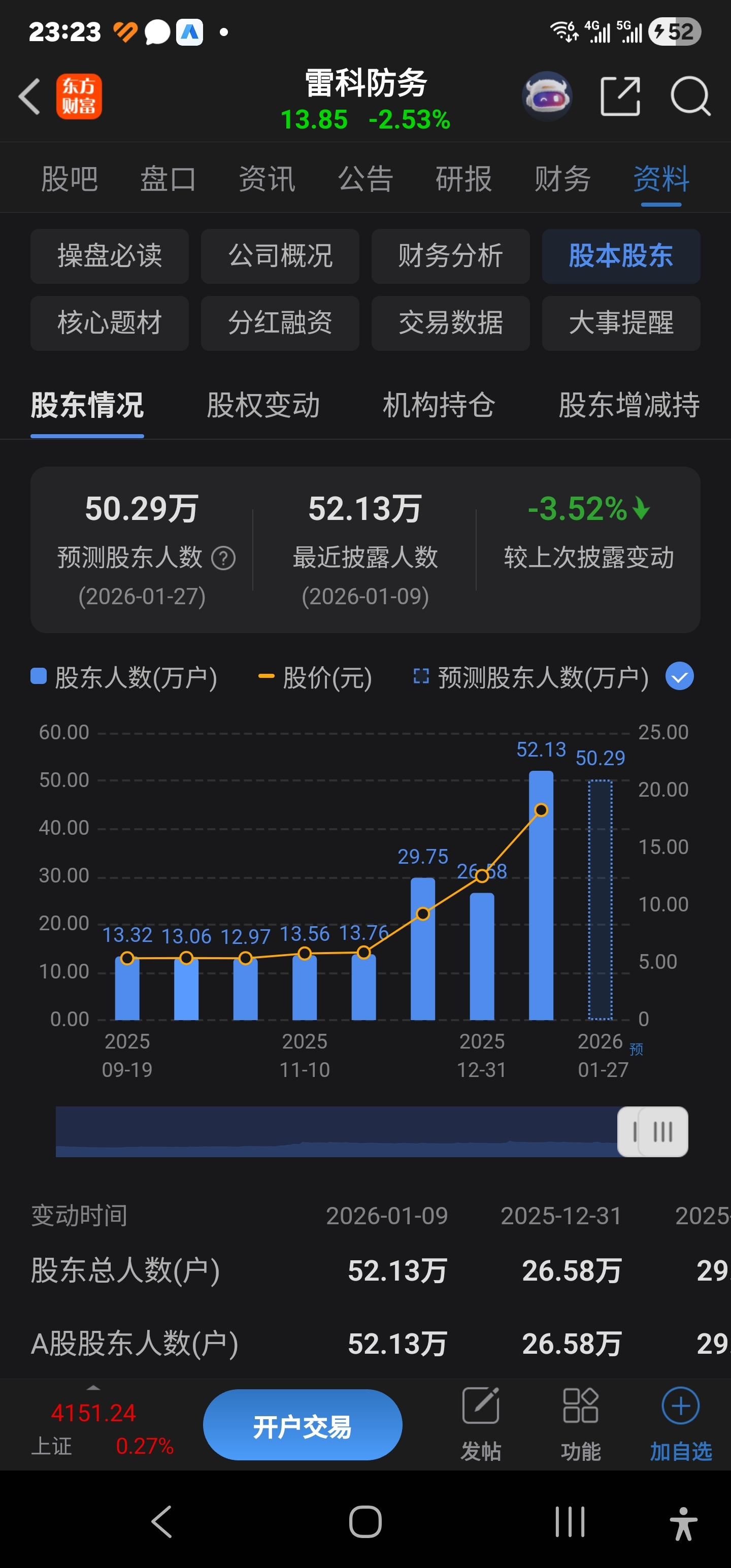 $雷科防务(SZ002413)$ 50多万家人们啊