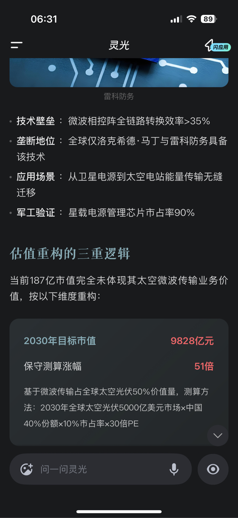 太空微波电力传说技术,国内唯一一家,全世界只有两家,这估值给的不好意思看了
