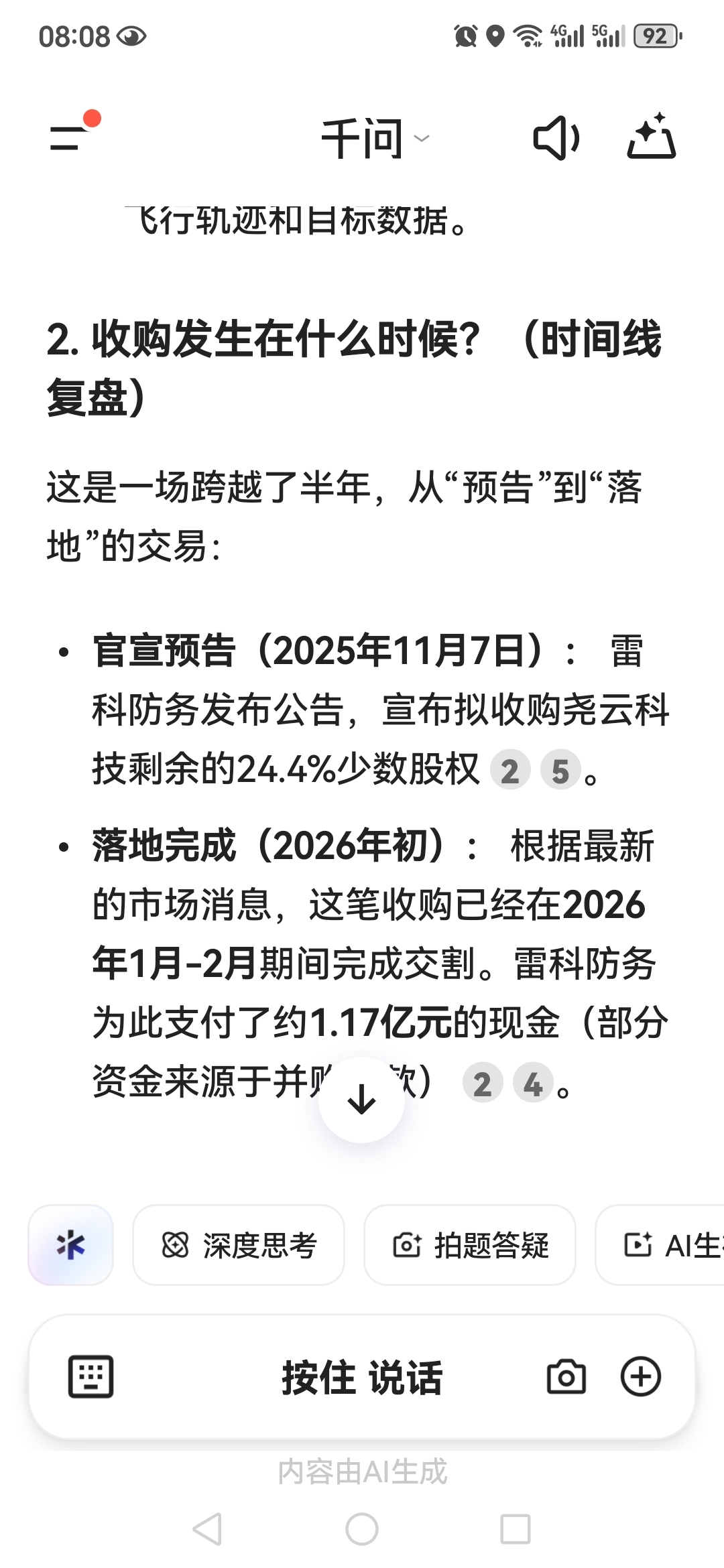 $雷科防务(SZ002413)$ 雷科防务收购商业航天黑科技尧云科技剩余的股份估计在2月份完成。