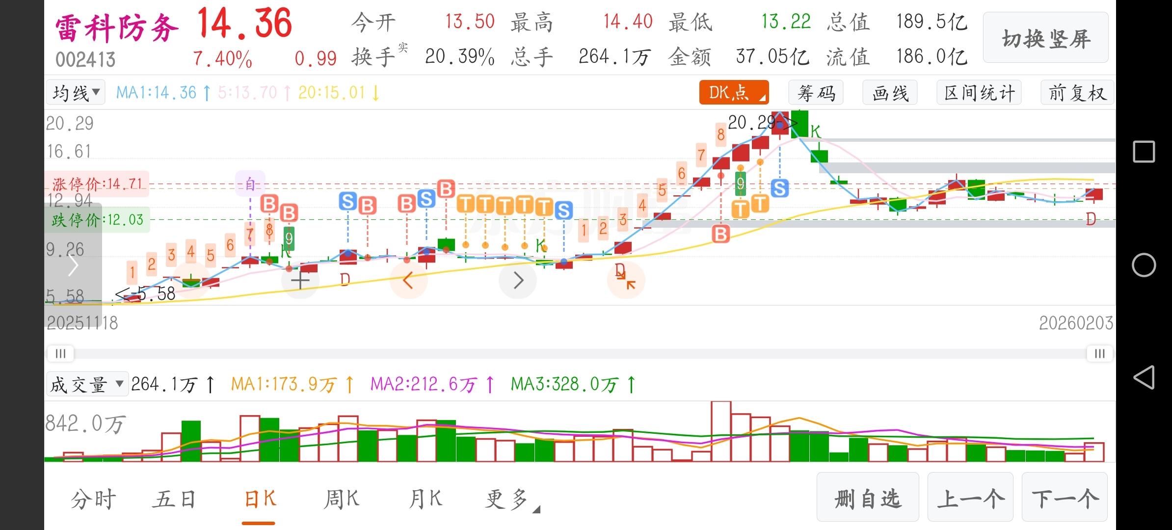 $雷科防务(SZ002413)$ 在调整期不断折磨自己,在主升浪期一丝不挂!我也是服了自己!