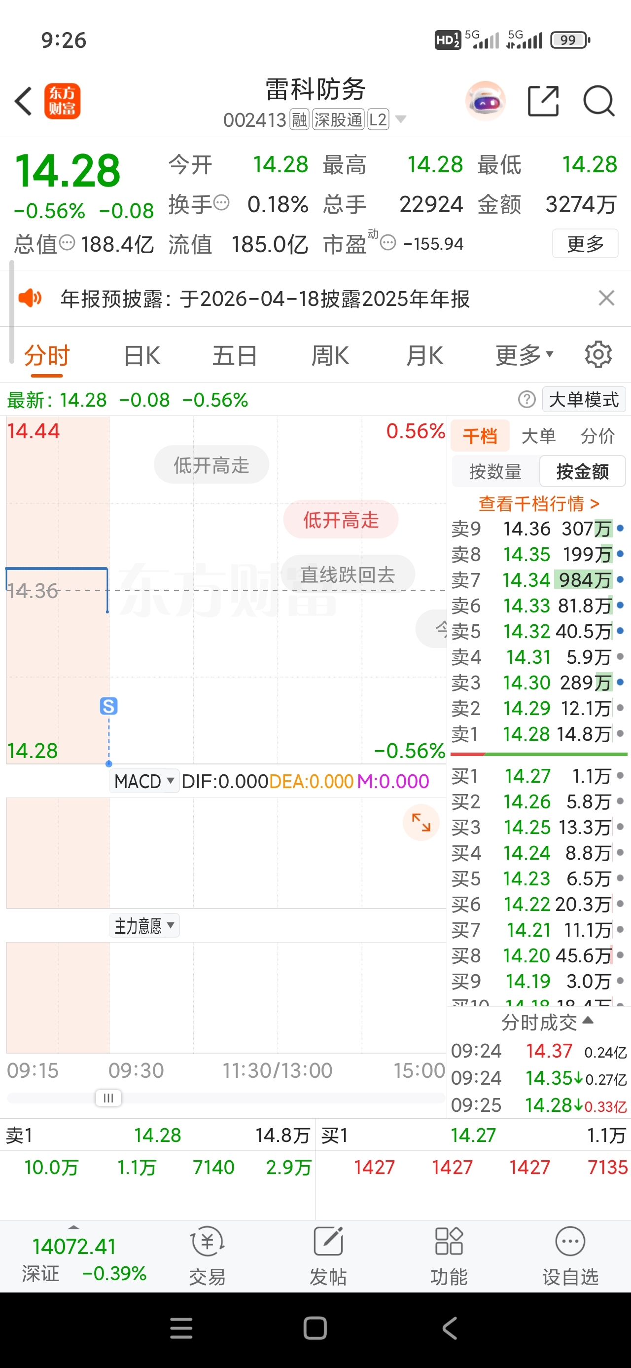 $雷科防务(SZ002413)$ 割肉了