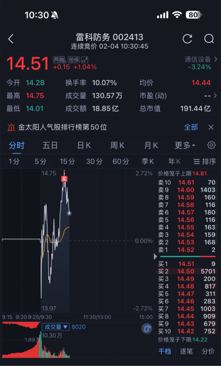 $雷科防务(SZ002413)$ 成功挂顶
