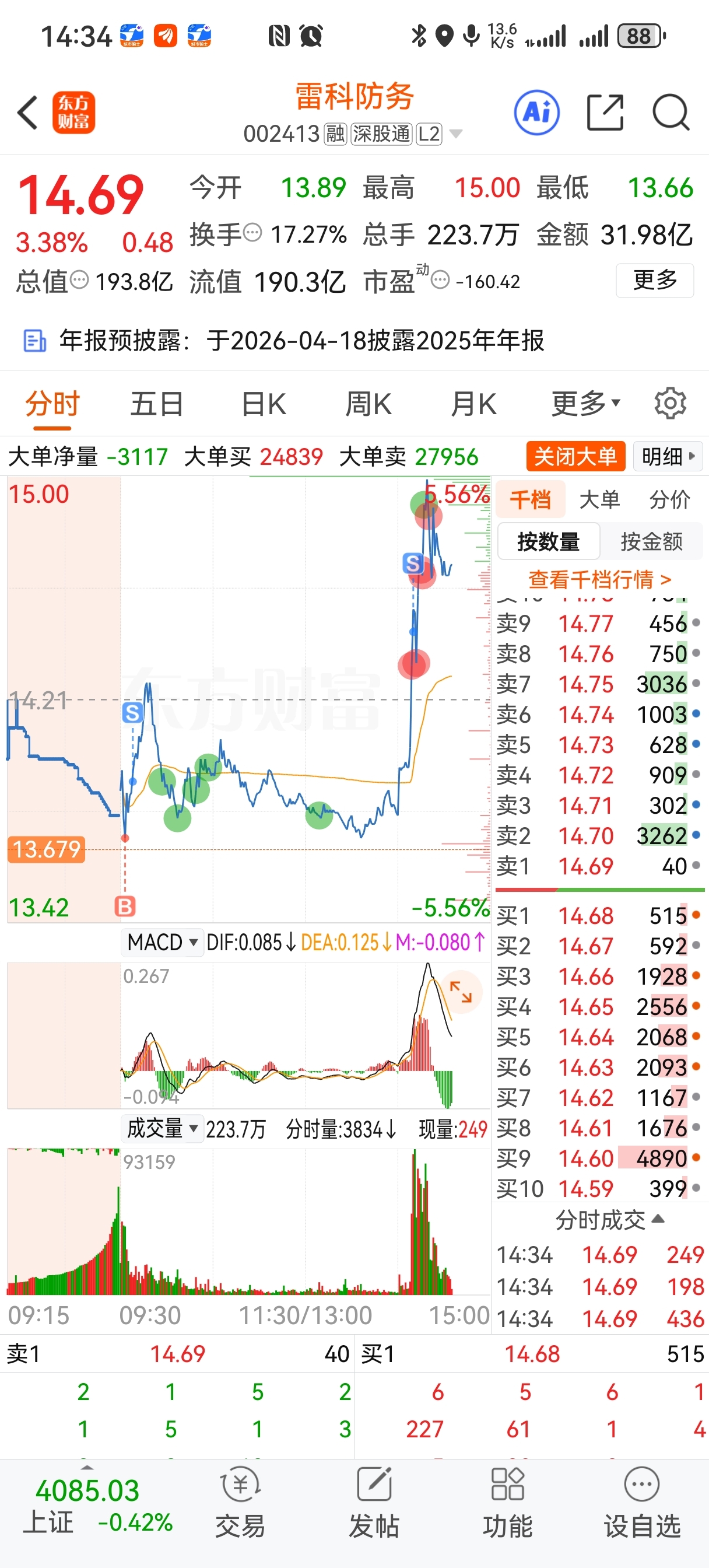 $雷科防务(SZ002413)$ 卖飞了吗?