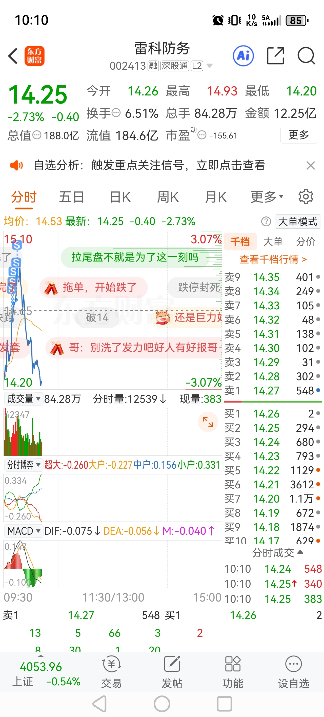 $雷科防务(SZ002413)$ 感谢大哥拉起来让我跑了