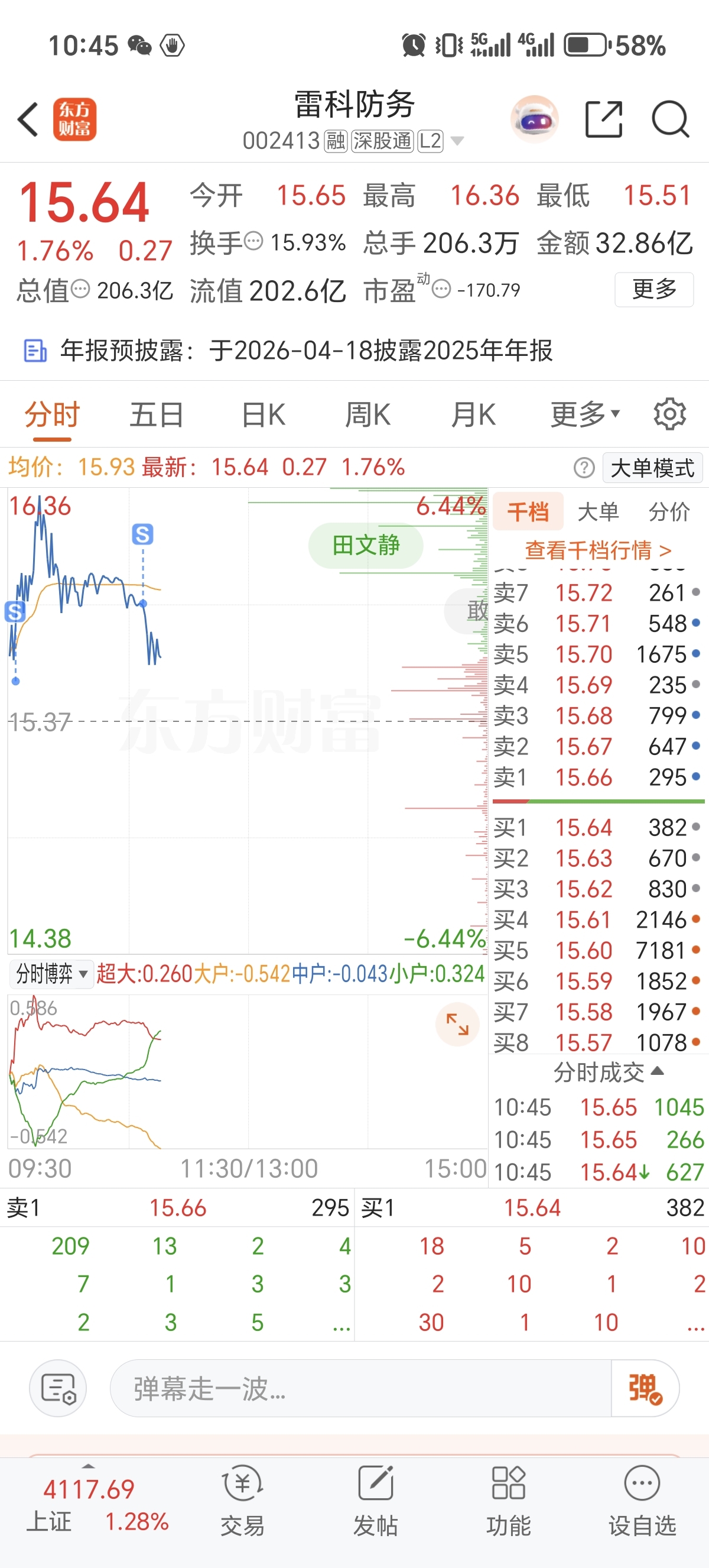 $雷科防务(SZ002413)$ 我是主力???