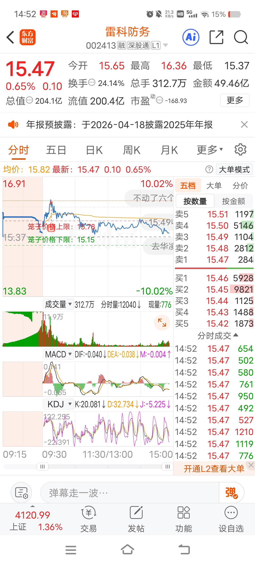 $雷科防务(SZ002413)$ 买在了了最高点 谁能比我强