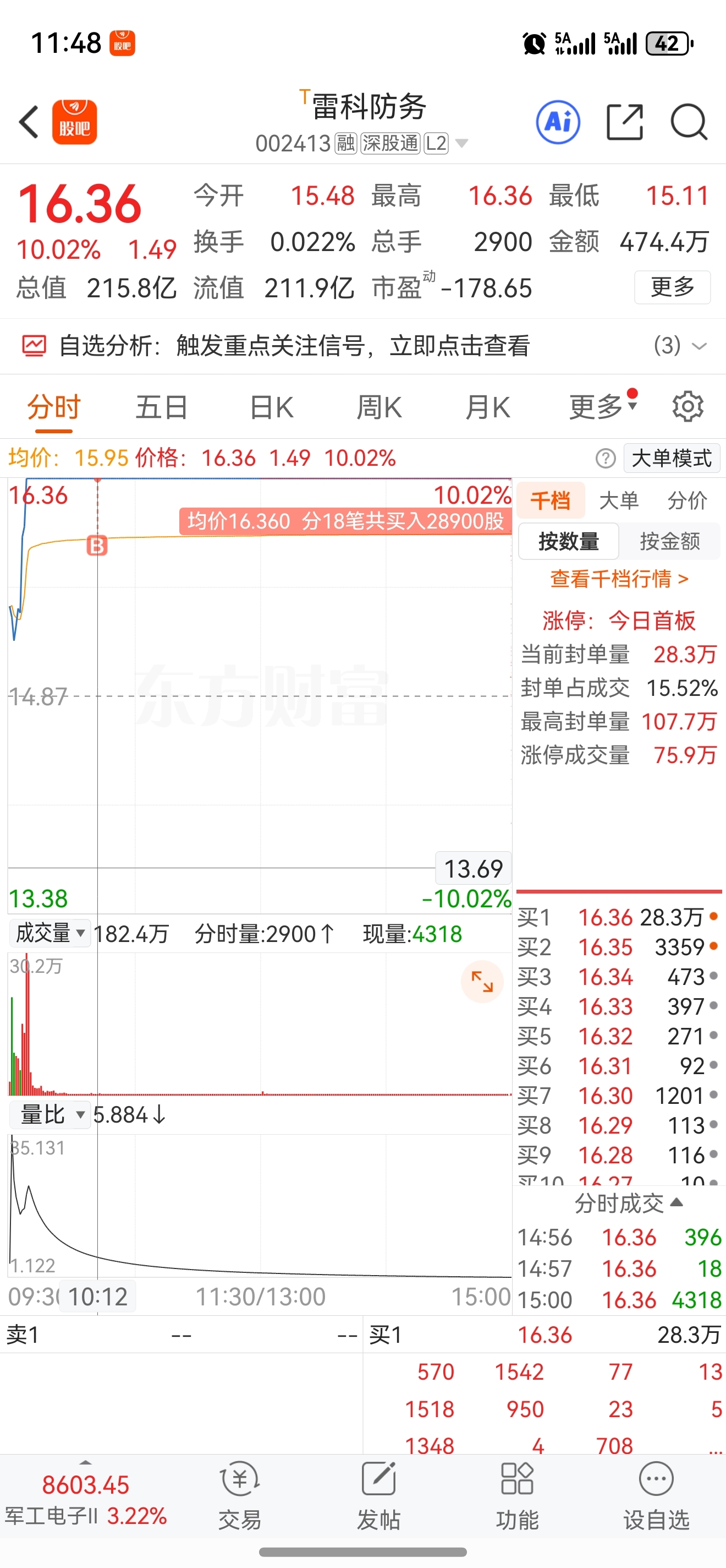 $雷科防务(SZ002413)$ 板上拿了一笔,中东局势愈演愈烈,军工预期不错