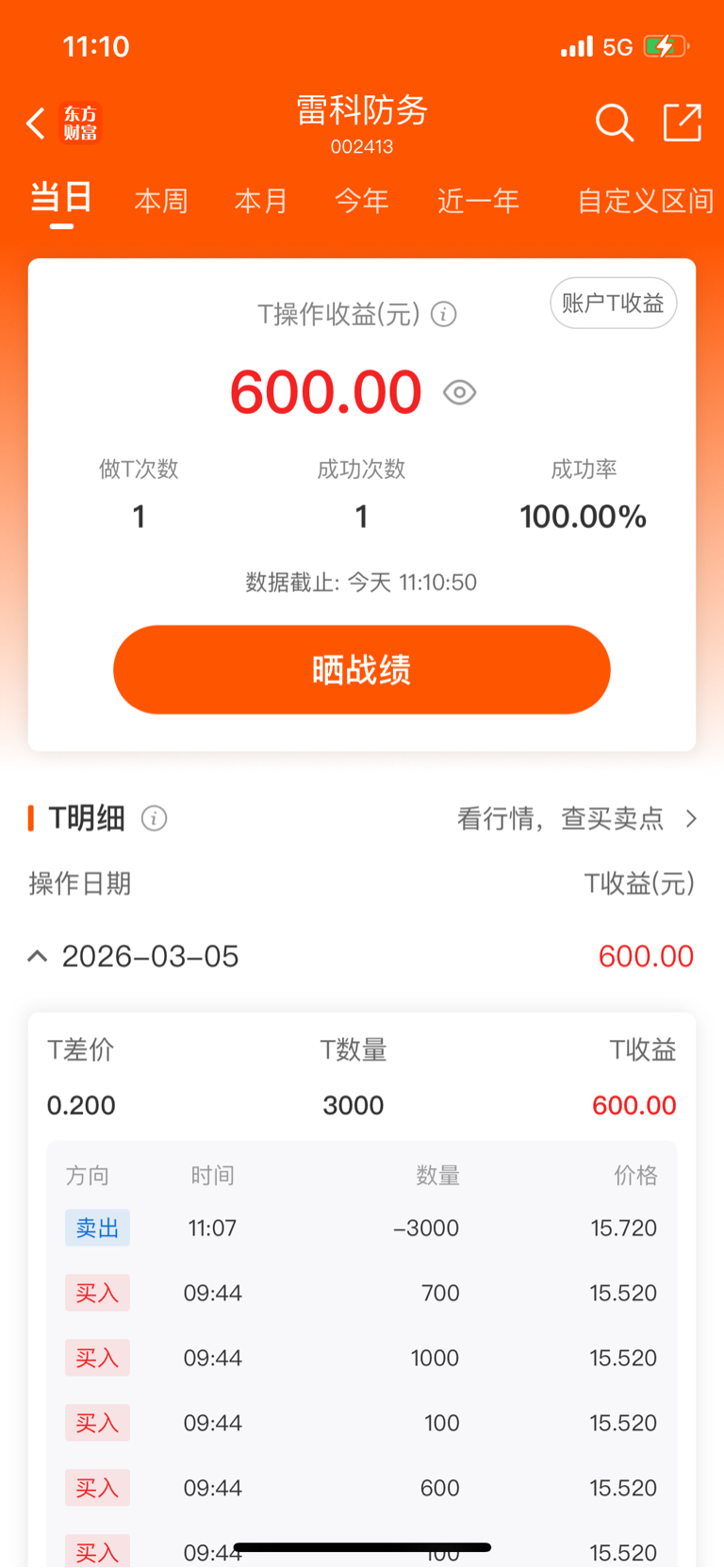 日内T,小手一抖,600到手,明天3-5个点又是美滋滋