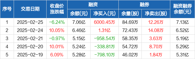 高德红外:融资净买入6000.45万元,融资余额7.06亿元(02-25)