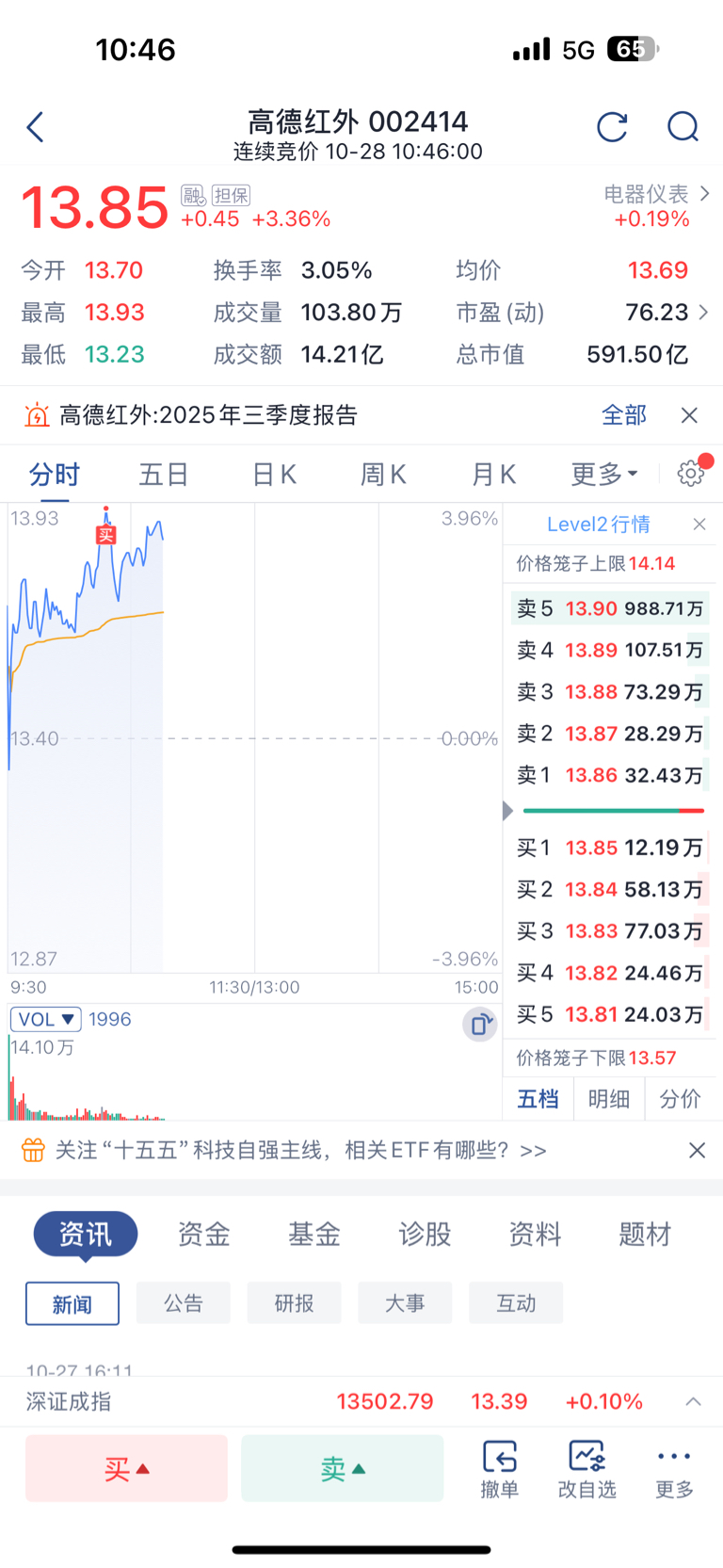 $高德红外(SZ002414)$ 今天我高升山顶集团董事长
