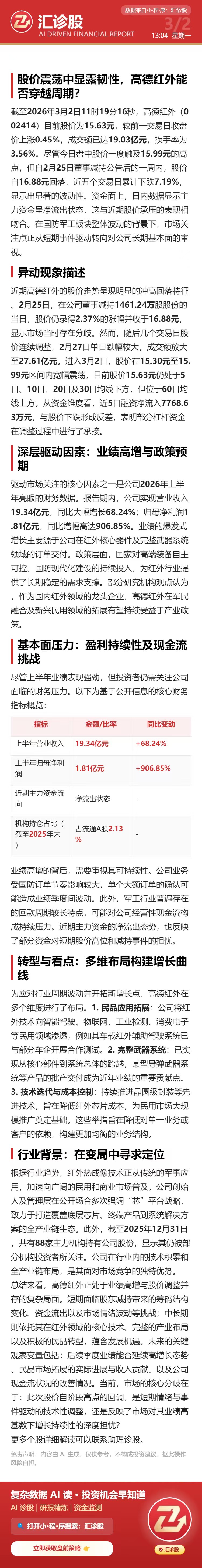 股价震荡中显露韧性,高德红外能否穿越周期?