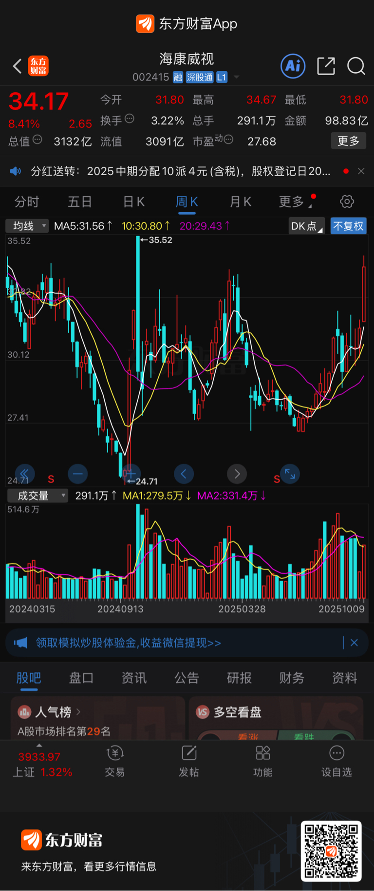 大盘都超去年9月底高位多少了?海康却连去年9月底的高位都没破,严重跑输大盘。补涨