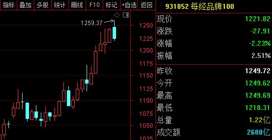 10月首周,A股市场迎来高位震荡,每经品牌100指数冲高1259点后出现回调,本周最终下跌1.65%,以1221.82点报收。成分股中,海康威视、中国中铁以及中国中冶等6只个股周涨幅超5%。