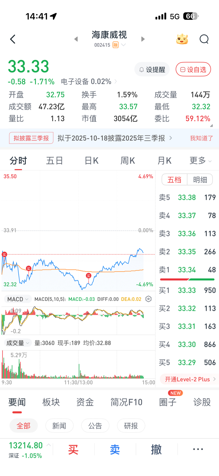 $海康威视(SZ002415)$ 本来今天想躺平的,结果一大早就有空沟让我卖,那我只能加仓了,结果您猜怎么着?红了,嘿!